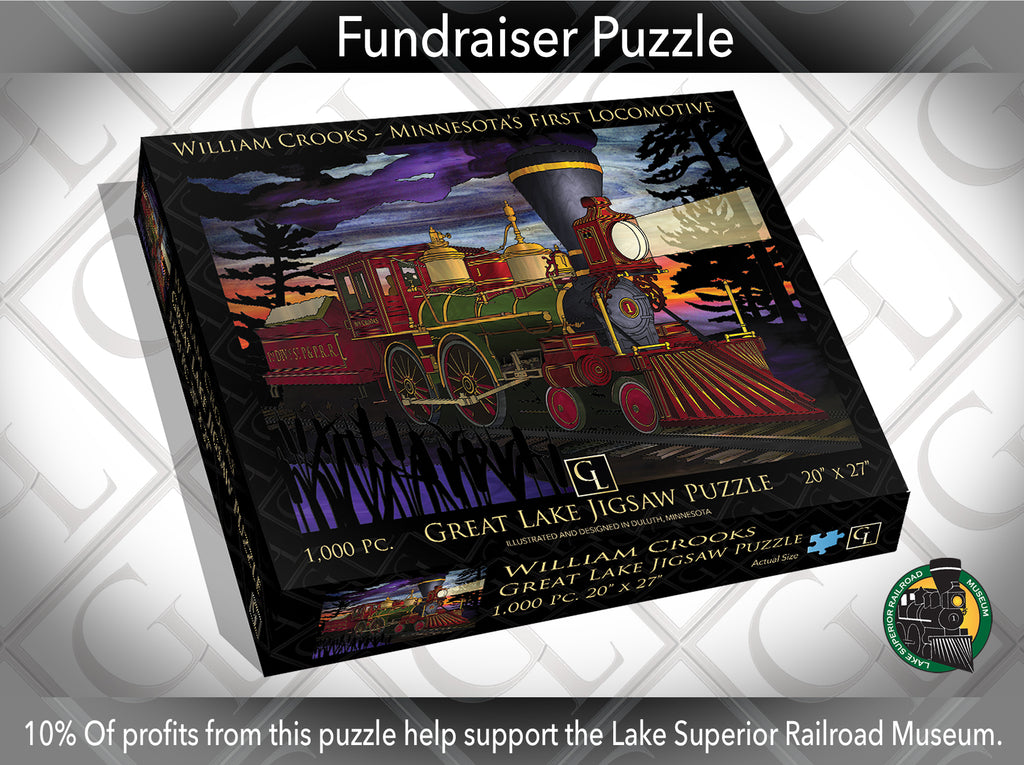 with the Great Lake Jigsaw Puzzles from Duluth, Minnesota artist Gary Lundstrom. Great Lake Jigsaw Puzzles showcase the history and unique beauty of the region at the western end of Lake Superior and make a great gift / family activity. But there's more because Great Lake Design is producing a new puzzle design by another Duluth artist! Janet Hill's Forest Friends are getting their jigsaw puzzle debut! Order here is save $2 vs. retail! As with all puzzles and other Great Lake' items, you have your choice at then of your purchasing process to choose "local delivery for $10, studio pick-up for free or a below-cost anywhere-in-the-US $15.